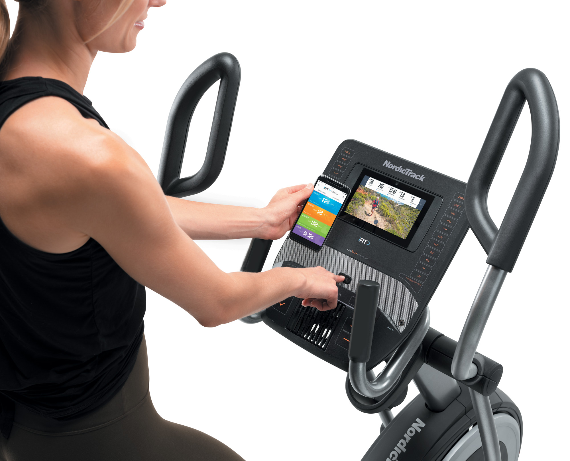 Рухайтеся комфортно та природно, використовуючи рукоятки Soft Touch та великі м'які нековзні педалі, а також отримайте миттєву мотивацію, слухаючи енергійні тренування iFit завдяки вбудованій звуковій системі тренажера з двома динаміками.