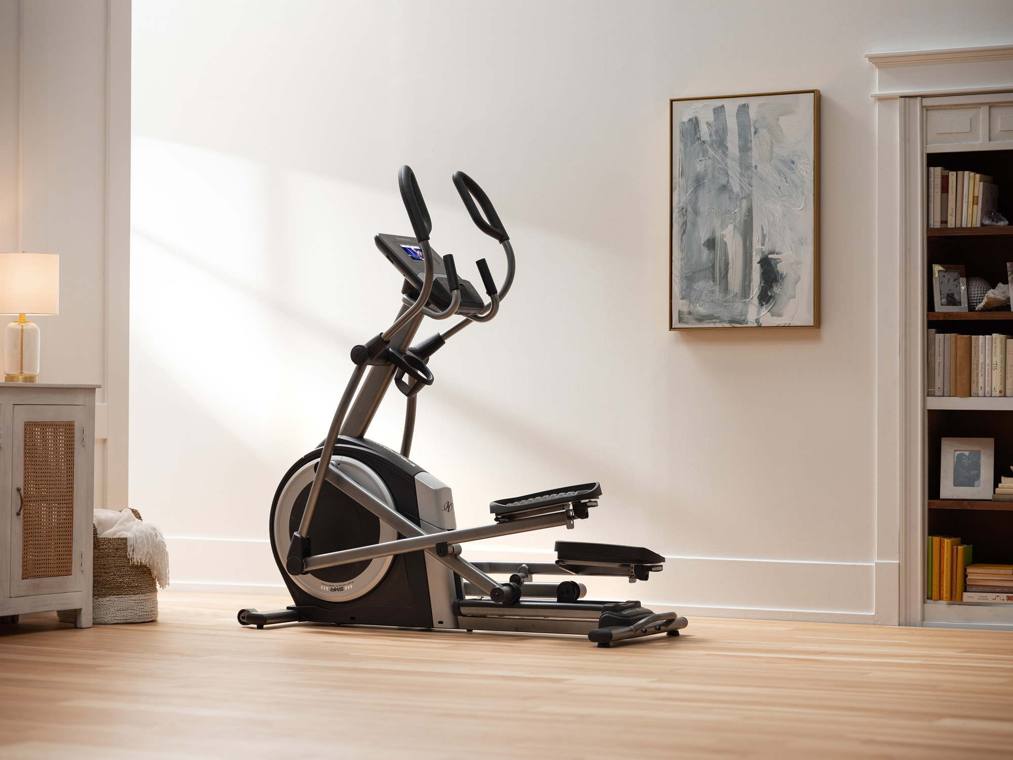 Надайте тонус всьому тілу та насолоджуйтесь ефективними інтерактивними тренуваннями вдома з орбітреком NordicTrack Commercial 9.9. Завдяки потужному 11 кг маховику з посиленою інерцією він забезпечує плавну роботу протягом усього тренування. Щоб зробити тренажер придатним для широкого кола користувачів і забезпечити комфортну їзду, є регульований крок 45-48 см. Еліптичний крос-тренажер пропонує 22 цифрових рівні безшумного магнітного опору (SMR), а також регульований кут нахилу від 0 до 20°, аби ви могли самостійно встановлювати складність для кожного тренування та збільшувати кількість калорій, що спалюються.
