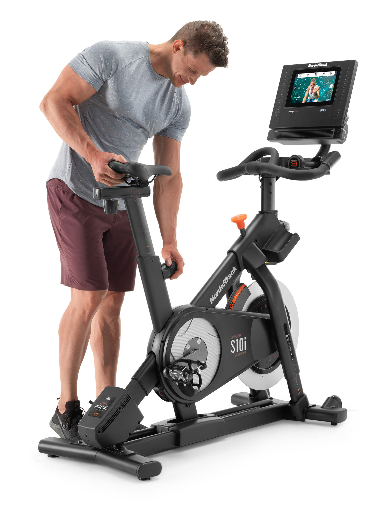 Спінбайк NordicTrack Commercial S10i NTEX03121, завдяки своїй комфортній конструкції, є ідеальним тренажером для інтенсивних тренувань. Його регульоване м'яке сидіння гарантує максимальний комфорт для ваших занять. Цей тренажер-велосипед має інноваційний дизайн з 10-дюймовим сенсорним екраном для цікавіших тренувань. Система Touch Control забезпечує найкращі й найбільш зручні налаштування кута нахилу, дозволяючи змінювати його одним натисканням кнопки. У комплект входять також пара гантелей на спеціальній підставці, за допомогою яких можна урізноманітнити тренування новими варіантами вправ.